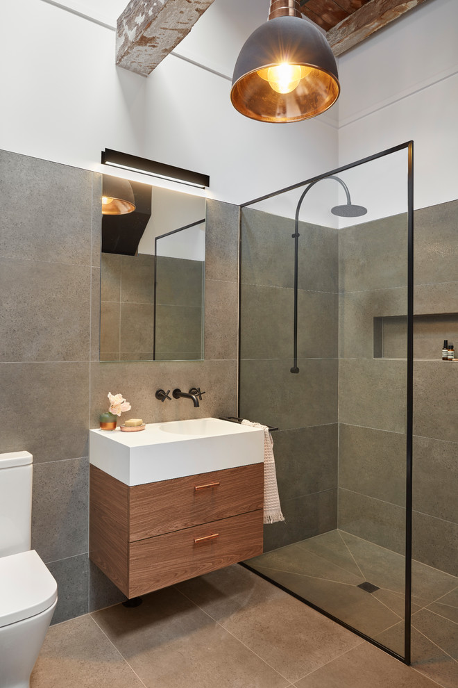 #344 Howitt - Modern - Bathroom - Melbourne - by mckimm ... from st.hzcdn.com Save up to 30% warehouse sale: Some bathroom mirrors come with shelves, handy for your toothbrushes and toothpaste. Choose from wall hanging mirrors, free standing mirrors and even clever suction mirrors from spotlight!